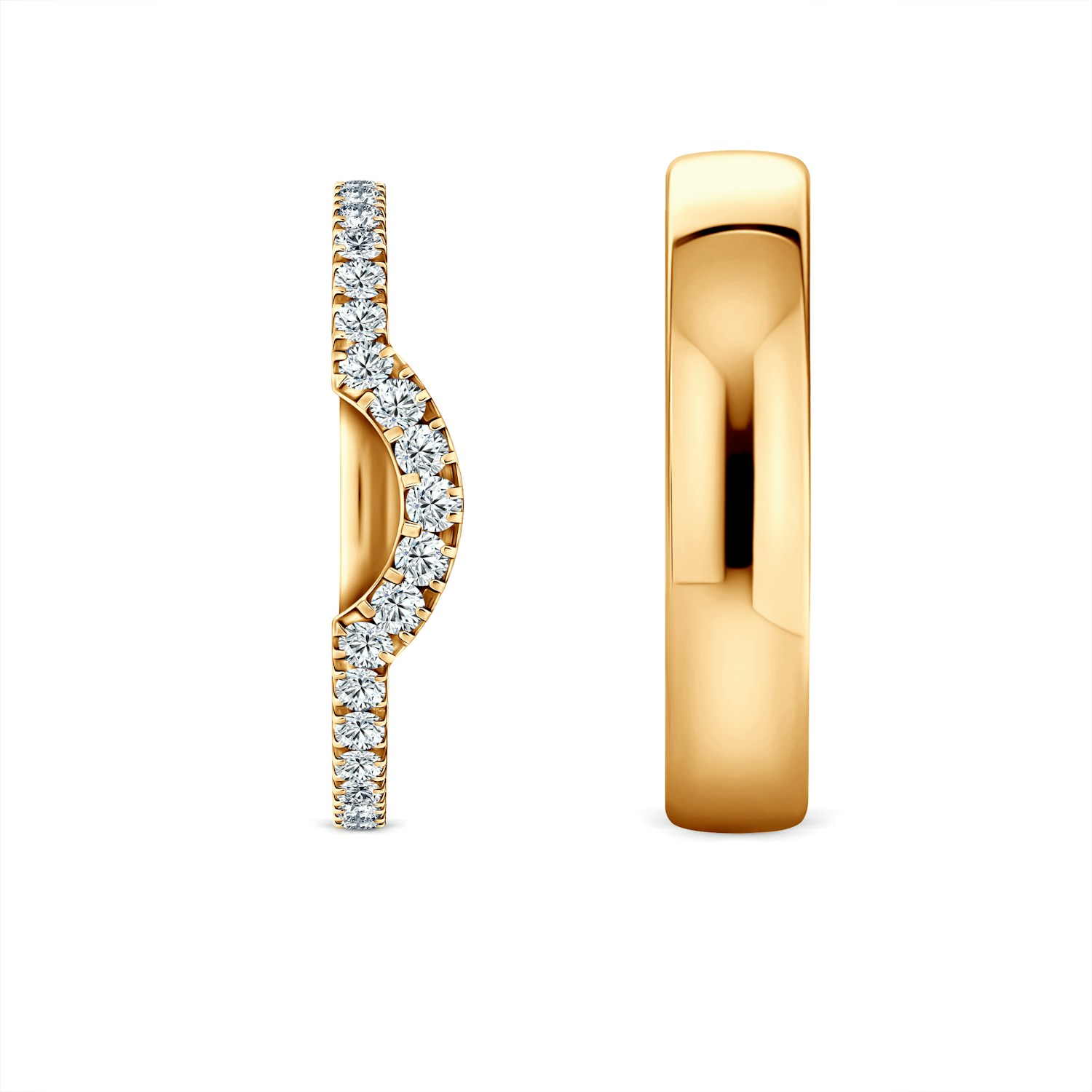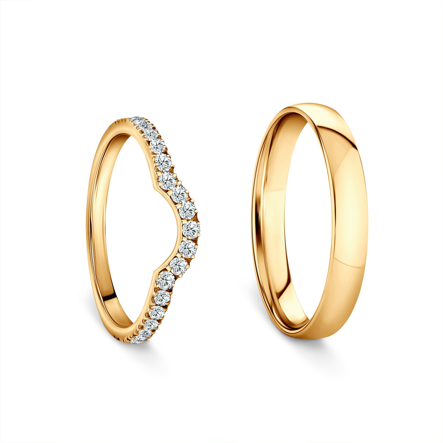 Špeciálne profilovaná svadobná obrúčka ideálne zapadá do zásnubného prsteňa čím tvoria originálnu kompozíciu šperkov.